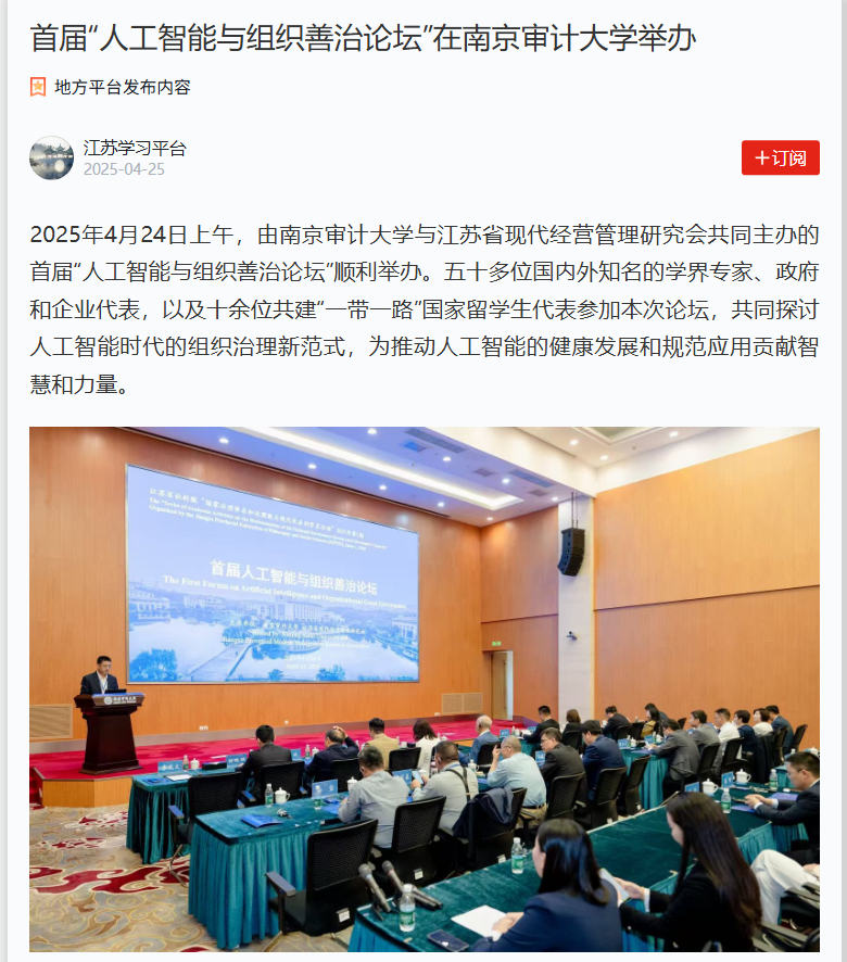 学习强国:首届“人工智能与组织善治论坛”在南京审计大学举办