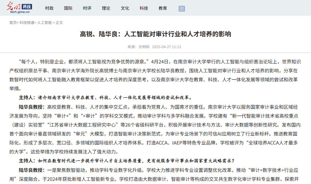 光明网:高锐、陆华良:人工智能对审计行业和人才培养的影响