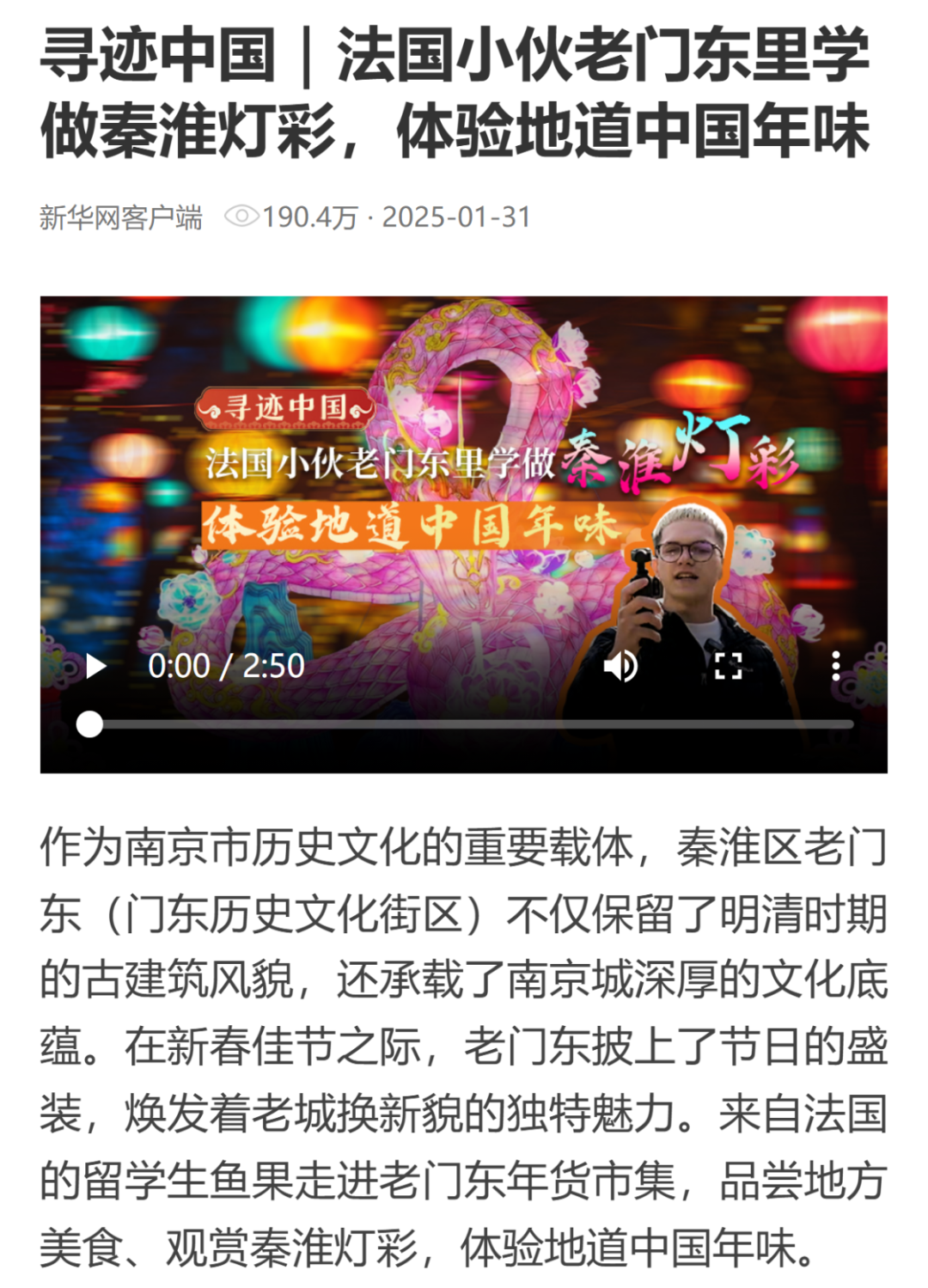 新华网:寻迹中国|法国小伙老门东里学做秦淮灯彩,体验地道中国年味