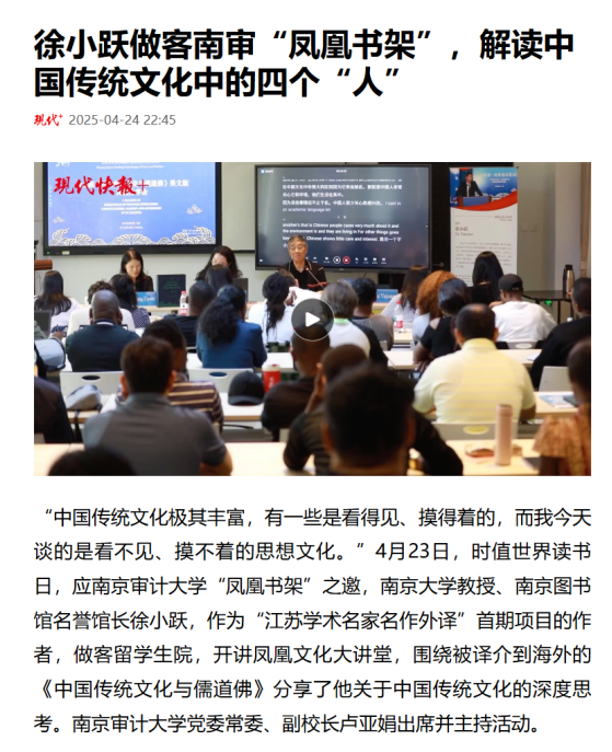 现代快报:徐小跃做客南审“凤凰书架”,解读中国传统文化中的四个“人”