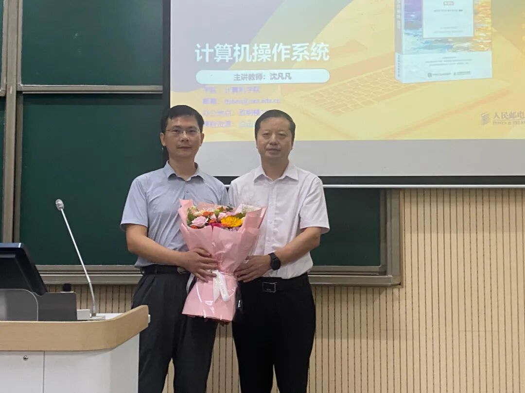 校党委副书记陈中建为计算机学院老师沈凡凡赠送鲜花