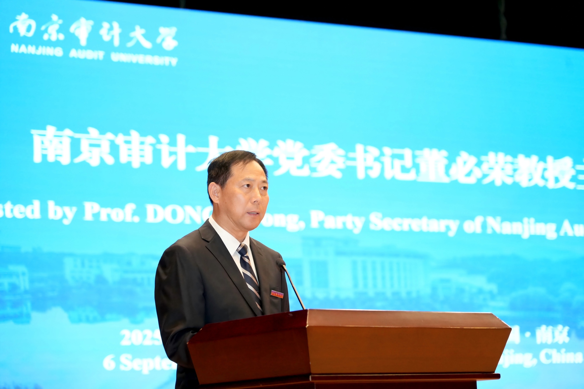 南京审计大学党委书记董必荣主持仪式,并宣读《关于授予乌兹别克斯坦审计院院长梅赫里丁·阿卜杜拉耶夫博士荣誉教授学衔的决定》。
