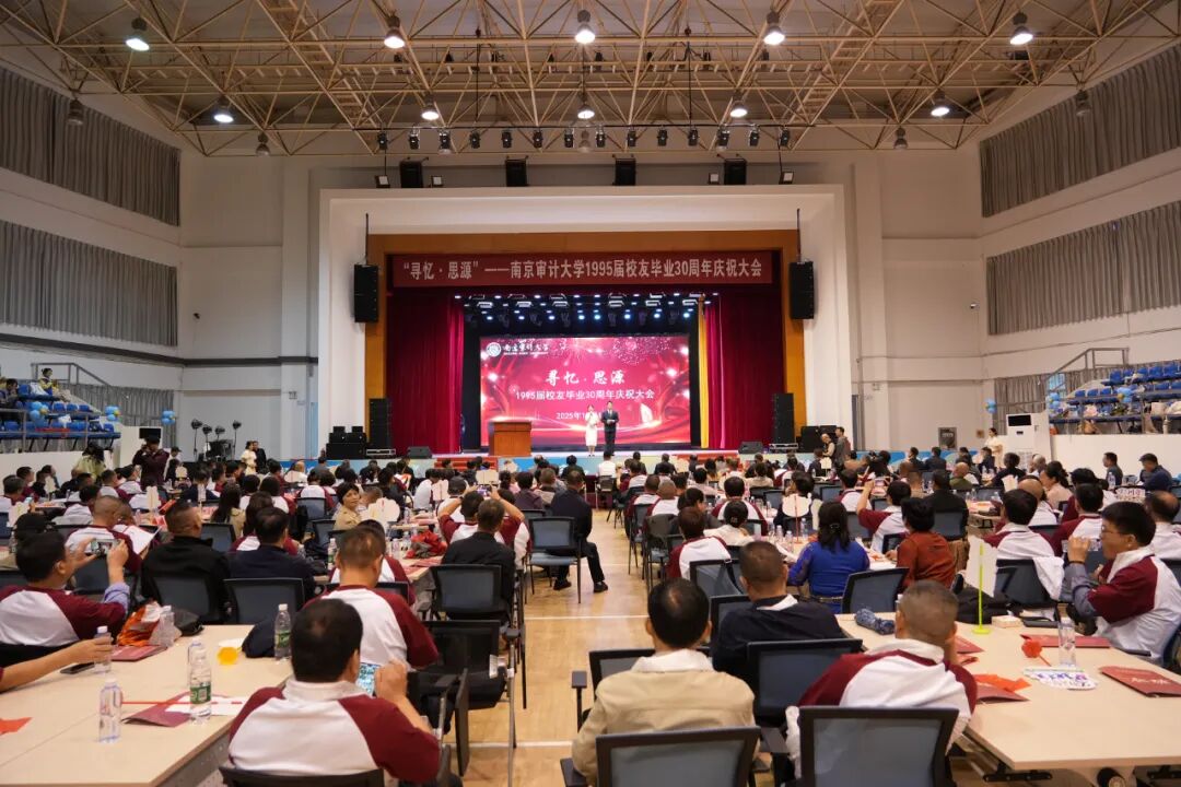 10月18日上午10:00,“寻忆·思源”1995届校友毕业30周年庆祝大会在浦口校区沁园体育馆举行。校党委副书记、校长陆华良,原南京审计学院党委书记、院长易仁萍,校党委常委、副校长李乾文,南京审计大学原副校长尹平,南京审计大学原党委副书记、副校长王会金等出席大会,校友们熟悉的老教师代表、校友代表以及学校相关学院和职能部门负责人等200余人参会。