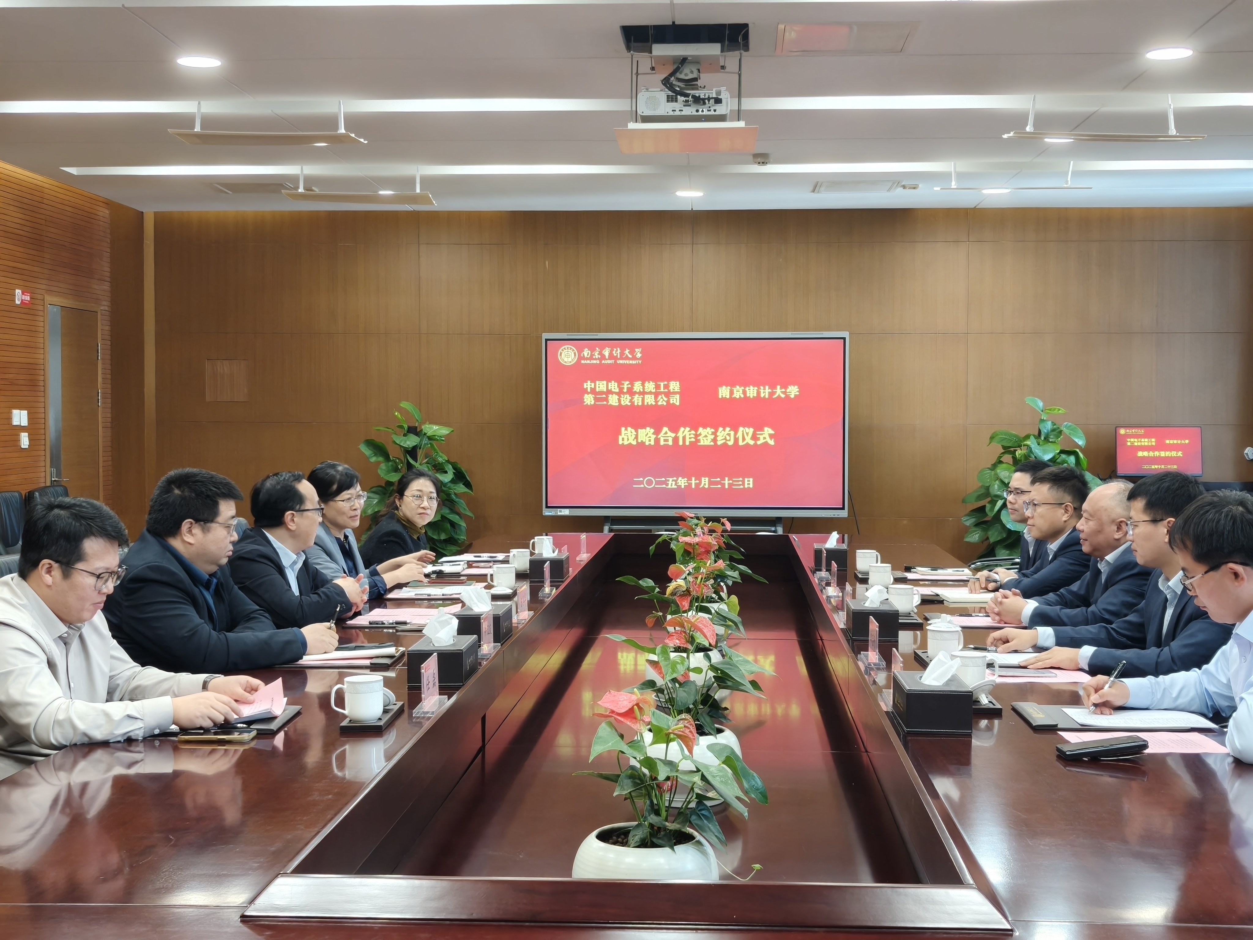 10月23日上午,我校与中国电子系统工程第二建设有限公司(以下简称中电二公司)举行战略合作协议签约仪式。我校党委常委、副校长陈冬华,中电二公司董事长李楠、纪检部总经理欧志列等出席,内部审计学院院长许汉友及相关部门负责人参加。本次会议由内部审计学院党总支书记李海燕主持。