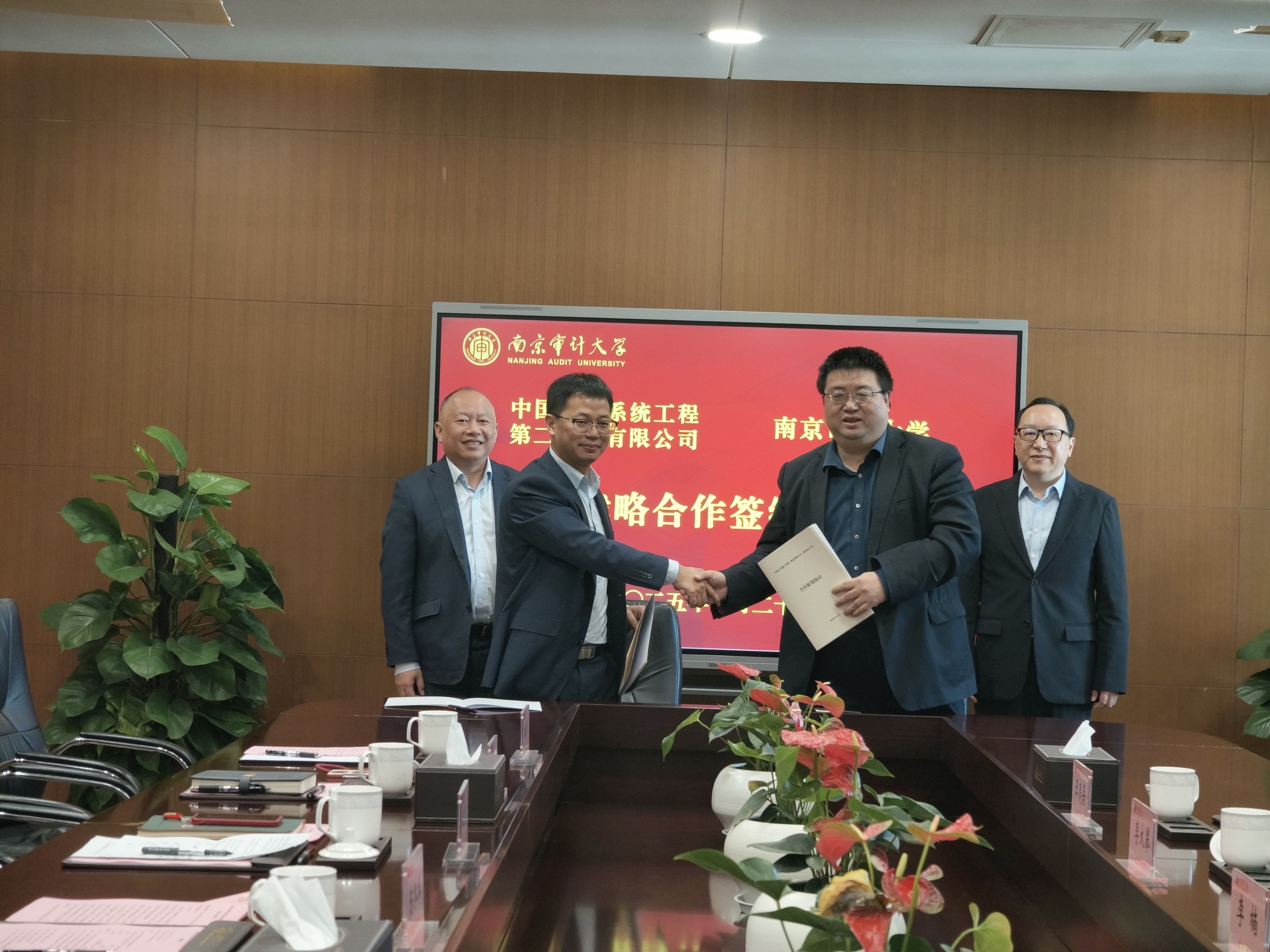 在与会嘉宾见证下,许汉友、欧志列分别代表南京审计大学和中电二公司签署战略合作协议。