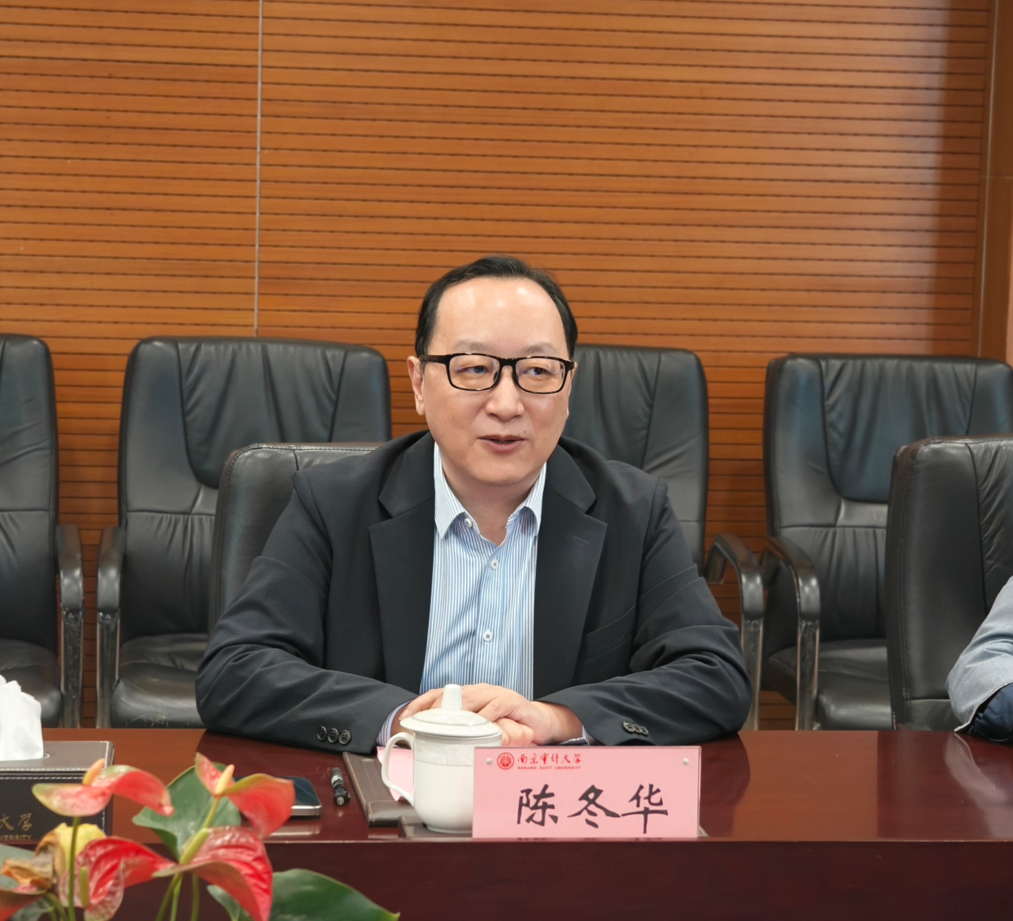 李楠对我校的办学成效,特别是审计高等教育国际化方面的创新成果予以肯定。他介绍了中电二公司的发展历程、业务板块、技术优势与治理体系等,并围绕国际化业务布局、审计数字化转型、人员综合能力塑造等方面分享了公司的整体规划。他表示,此次战略合作对公司推动国际化战略、提升审计监督效能、履行企业社会责任等具有重要意义,愿与南审密切联系、深入合作,共同探索校企组团“出海”新路径,助力国际化审计人才培养。