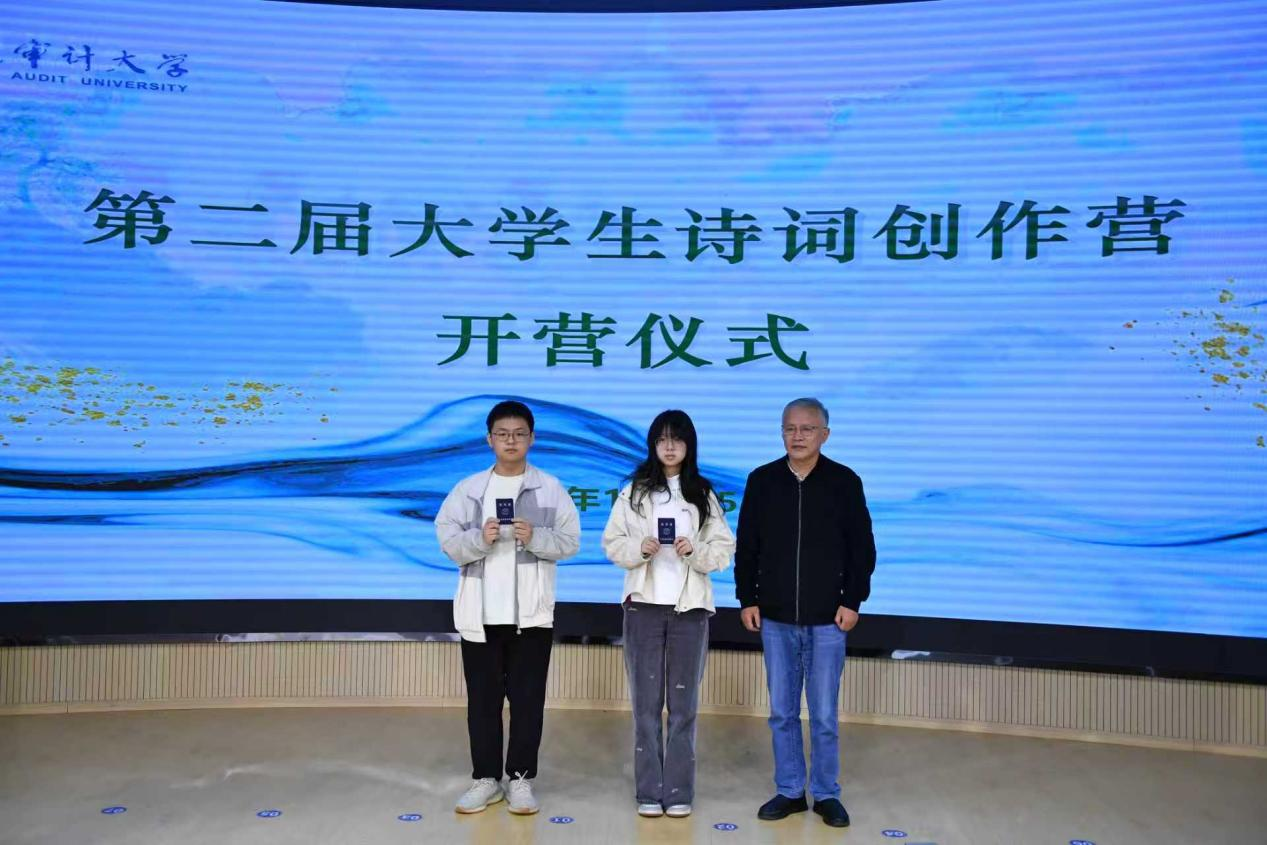 10月25日下午,我校第二届大学生诗词创作营开营仪式在浦口校区大学生活动中心一楼心学堂举行。本届大学生诗词创作营由江苏省诗词协会与南京审计大学联合主办,协会副会长袁功民、子川、杨学军,副秘书长王晓然,中华诗词学会十大导师子川班班长尤树林,常务理事赵怀民等专家莅临指导。我校党委副书记、校长陆华良,校党委常委、副校长周方舒,校团委及国际学院相关负责人出席。仪式由国际学院副院长张文秀主持。