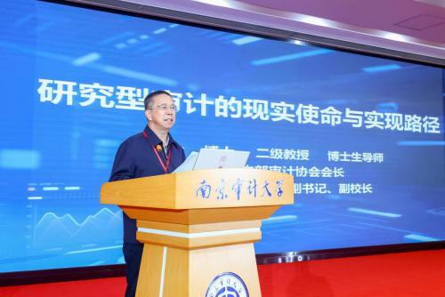 我校原党委副书记、副校长、中国内部审计协会常务理事、江苏省内部审计协会会长王会金、南京师范大学商学院院长白俊红、江苏省审计科研所所长李海涛分别作主题报告。