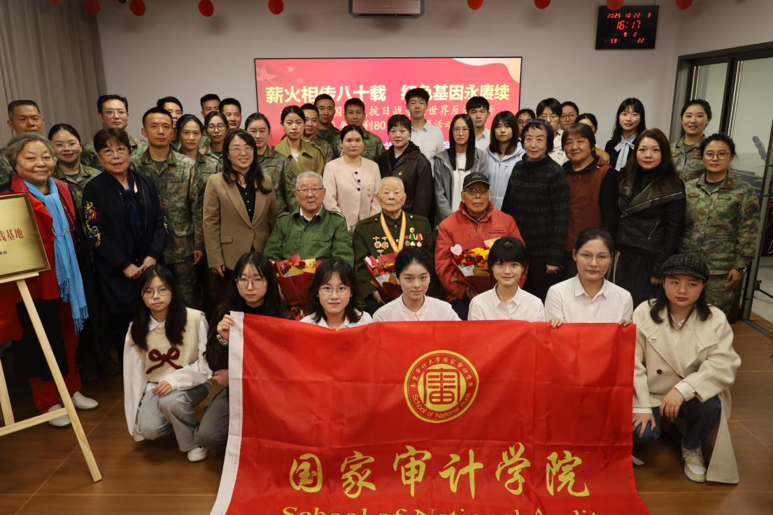 近日,国家审计学院联合江苏省新四军研究会五师分会、江苏省军区南京第二离职干部休养所,共同举办“传承红色基因 汲取奋进力量”主题教育暨大学生思想政治教育实践基地揭牌仪式。江苏省军区南京第二离职干部休养所、江苏省新四军研究会五师分会、国家审计学院、泽园书院等相关负责人、党员师生代表、离退休老干部及官兵共同参与。