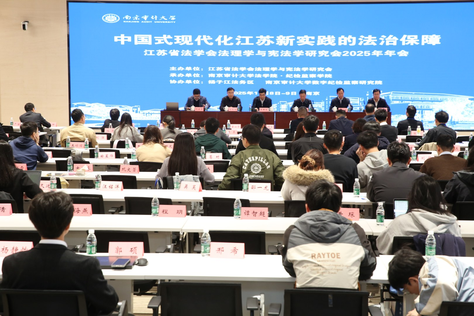 11月8日至9日,由江苏省法学会法理学与宪法学研究会主办,南京审计大学法学院(纪检监察学院)承办,扬子江法务区和南京审计大学数字纪检监察研究院协办的“江苏省法学会法理学与宪法学研究会2025年年会”在南京召开。会议围绕“中国式现代化江苏新实践的法治保障”主题。来自江苏省法学会、江苏省司法厅、江苏省委政法委建设指导处以及各高校、法院、检察院、律师事务所等理论与实务部门的200余位嘉宾参加了会议。