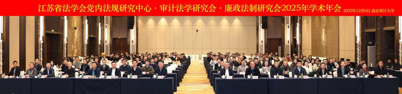 12月6日,“江苏省法学会党内法规研究中心、审计法学研究会、廉政法制研究会2025年学术年会”在南京举行。会议由江苏省法学会党内法规研究中心、审计法学研究会、廉政法制研究会共同主办,南京审计大学法学院·纪检监察学院、江苏省职务犯罪检察研究基地承办,北京市尚公(南京)律师事务所协办。来自江苏及全国高校、审计部门、法律实务部门的专家、学者及学生近200人参会。