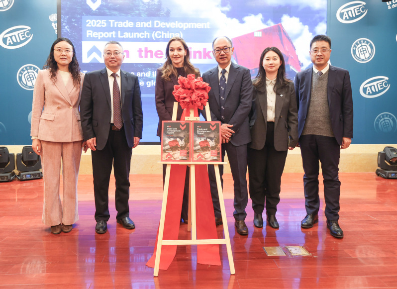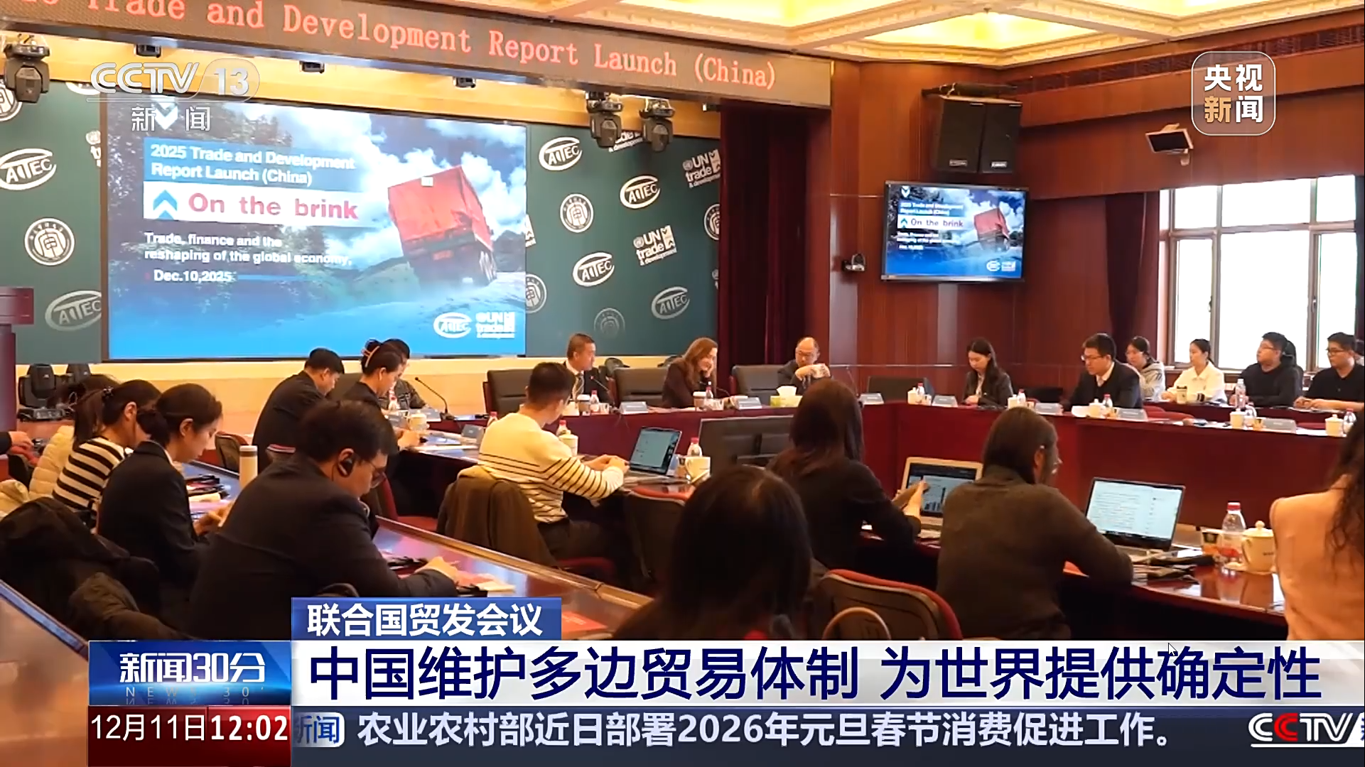 12月10日,联合国贸易和发展会议与中国商务部国际贸易经济合作研究院在北京共同发布2025年度《贸易与发展报告》,我校参与承办。此次发布会汇聚了来自国际组织、政府部门、高校智库及中外媒体的代表。商务部国际贸易经济合作研究院欧洲研究报所长姚铃主持发布会,我校党委常委、副校长李乾文、任志成,国际合作与交流办公室主任王芳以及经济学院院长樊士德出席。