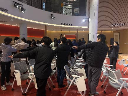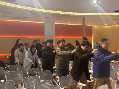 分享会结束后,心理健康教育教学部教师张佳洁带领新教职工开展了一场“心理互动赋能之旅”。大家通过“呼吸放松”“蒙眼盲行”“正念伸展”等一系列活动,在互动过程中释放压力、建立信任、增进情谊。