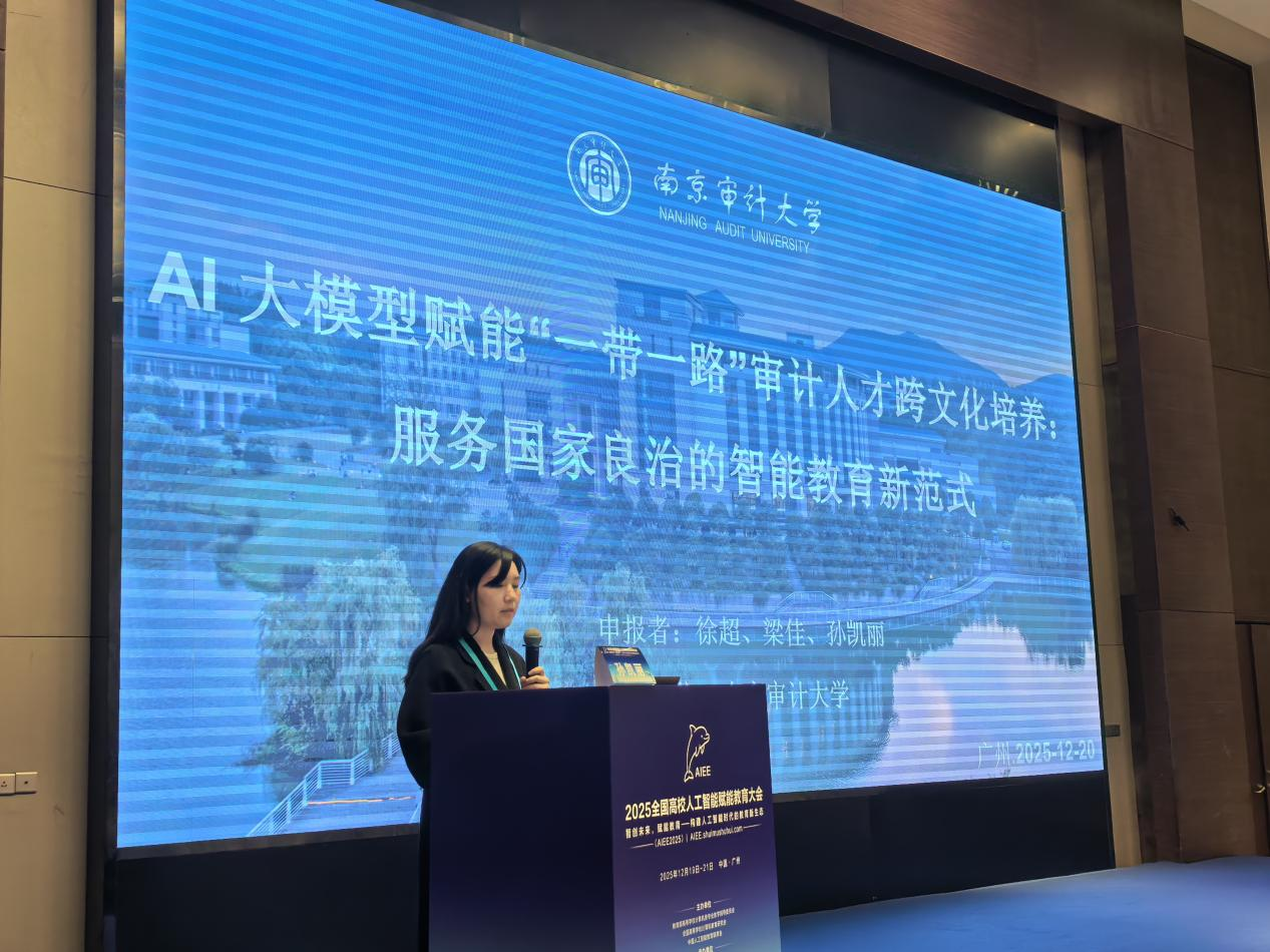 12月20日,2025全国高校人工智能赋能教育大会在广州召开。依托我校审计智能化AI大模型服务平台总结而成的教学案例“AI大模型赋能‘一带一路’审计人才跨文化培养:服务国家良治的智能教育新范式”获得特等奖。