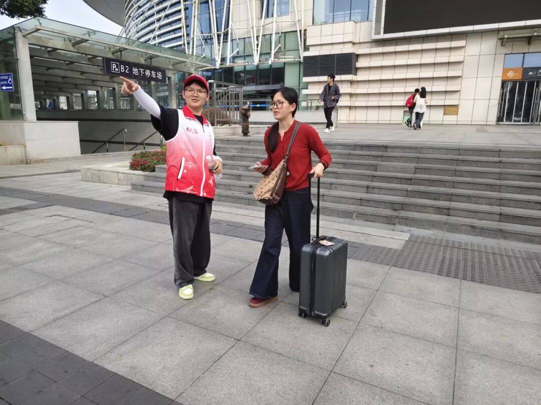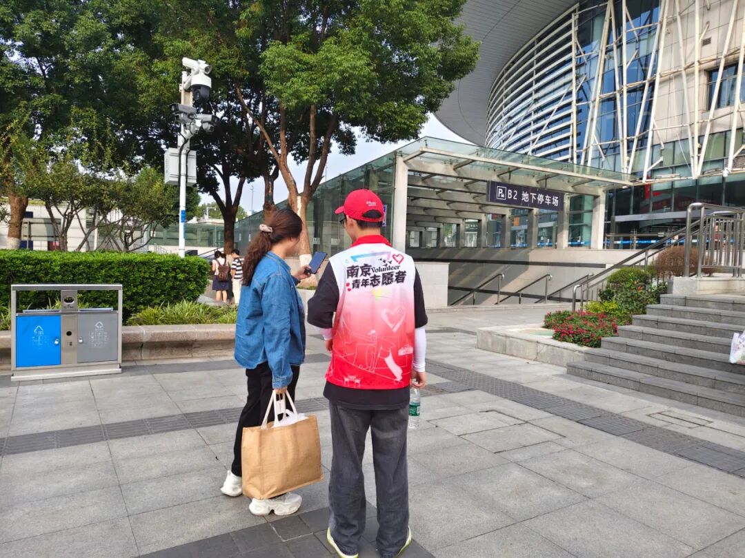 今年连休8天的中秋国庆小长假,张龙没有选择回家或外出旅游,而是做了整整八天的志愿服务。10月初的南京游人如织,但天气依旧闷热;张龙先后前往莫愁湖公园、南京站北广场以及江东门纪念馆参加志愿活动,服务来自五湖四海的游客们,帮他们指路、拍照;即使皮肤晒到发红,但游客一句真诚的“谢谢”,顿时消解了张龙的疲惫,“我也是来自外地的在宁大学生,志愿服务能让我帮助到更多的外地游客了解南京,我觉得很骄傲和自豪。”