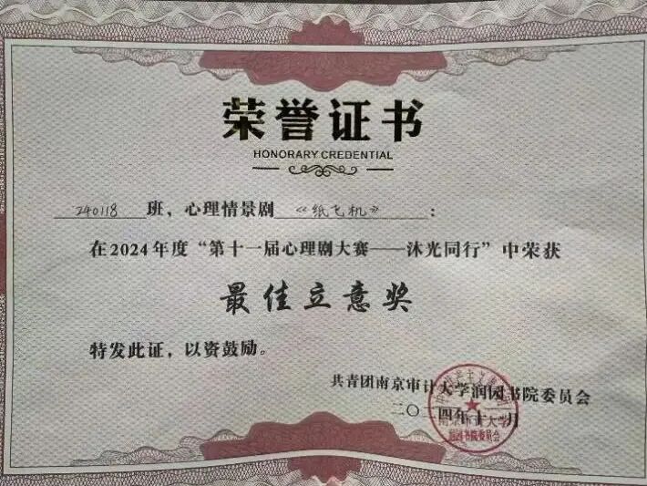 “我性子慢热,初入宿舍时,连主动搭话都要在心里反复斟酌许久”,刚入校时的张凤,胆怯像一层薄壳,把她裹在自己的小世界里。但是在日复一日的相处中,在睡前的卧谈会、考试周的互相打气、生病时递来的感冒药等细节中,室友们的热忱与友善像一束束光,慢慢照亮了她的拘谨,这个六人的小集体,成了她离家后最温暖的港湾。从前的张凤,总把“我不行”挂在嘴边:报名学生组织、竞选班委都要纠结半天,面试和竞选时会因为紧张而声音发颤、手心冒汗,面对竞赛和活动更是习惯性退缩。可大学的成长,从不由怯懦定义,张凤试着一点点走出舒适区:课堂上鼓起勇气站上讲台分享见解,课余时间主动报名各类志愿活动,大一寒假更是主动请缨,带队回到高中母校开展回访宣讲,“虽然我全程都揣着忐忑,但始终没说过放弃;我也终于在活动结束后明白,‘敢做’就已经赢了大半。”学业上,张凤的成绩一直稳居专业前列,可是大一综测时,她却因为竞赛、实践等短板落后于人。这次小小的挫败点醒了她:大学的优秀从来不是单维度的。大二伊始,张凤便主动报名竞赛,从一开始的缄默不语,到后来牵头组织讨论、梳理方案,纵然遇到无数难题,她也再没轻易说过“我不行”。如今的张凤早已告别了曾经的胆怯,担任工程审计学院大学生服务中心部长,她用一年时间证明了“成长就是与内心的怯懦对抗”;而曾经挂在嘴边的“我不行”,在一次次坚持中变成了掷地有声的“我可以”。张龙刚进校园时,骨子里的“怕”总在作祟:怕和室友话不投机、怕竞选班委时铩羽而归、怕面试宣讲团时手足无措。直到和室友们上军训场,烈日下一起扛过漫长的站军姿,休息时分享一瓶冰镇汽水,相视而笑吐槽一句“太阳太毒”,他才发现,陌生感会被共同的经历悄悄磨平——原来不用刻意讨好,并肩熬过难关就能成为默契的“战友”。后来张龙咬着牙迈出舒适区,班委竞选的演讲稿改了又改、宣讲团面试的模拟练习一遍又一遍,准备时的紧张、等待结果时的忐忑,现在回想起来都成了不值一提的小插曲。上图张龙大一时竞选班委,下图为张龙大二时竞选班委,巧妙的是两次穿着同一件衣服令张龙真正难忘的是成功后的那些瞬间:刚入大学时和班级同学们一起报名第十一届心理剧大赛,精心打磨的剧本和演出最终获得了“最佳立意奖”的好成绩;积极参加社会公益服务活动,前往南京审计大学实验学校开展安全知识的宣讲,看到讲台下小朋友们闪烁好奇与崇拜的眼神......这些时刻让他明白:“敢试比成功更重要,哪怕结果不完美,过程里的收获早已悄悄沉淀在心底。”张龙所在班级参加心理剧比赛获奖以及张龙在南京审计大学实验学校宣讲大一时,张龙也有过迷茫期:“每天忙忙碌碌的,我却没底气说我真正做成了什么,偶尔还会拖延着窝在宿舍虚度时光。”直到他主动走出宿舍,独自去图书馆看书学习,和室友相约在篮球场上挥洒汗水、在校园马拉松活动中肆意奔跑,和同学们报名参加各类志愿服务活动、组团参加校园趣味运动会,张龙逐渐找到了自己的节奏;如今的张龙担任润园书院通识教育中心任干事和班级学习委员兼宣传委员,为老师和同学们服务。