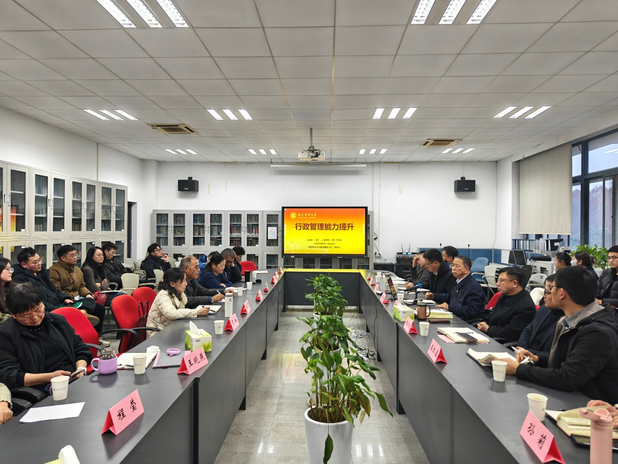 王会金指出,行政工作是学院运转的基石,提升行政人员管理能力能够有效提高学院内部治理能效,促进学院协同发展。他从坚守政治底线、树立服务意识、加强自身学习、做好沟通协调、培养创新思维等方面剖析了如何切实做好二级学院的行政管理工作。他以自身为例,分享了如何平衡教学、科研和行政工作,做好个人发展的经验。王会金强调,学院应加强文化建设,激发内生动力,营造团结、创新、有战斗力的组织氛围,增强全体教职工的归属感和责任感。
