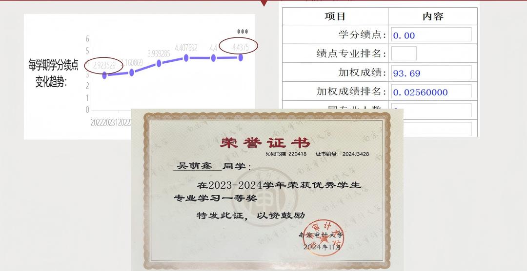 而真正的转折,在于他发现了兴趣与专业的交汇点。尽管主修英语,但他却在财务管理、内部控制等课程中连续取得90分以上的高分,大三下学期的《CPA审计》更是考出了95分的优异成绩。“黄芳老师当时比我还激动,鼓励我一定要‘融合发展’。”老师的肯定,点燃了他深耕“英语+商科”复合赛道的决心。
