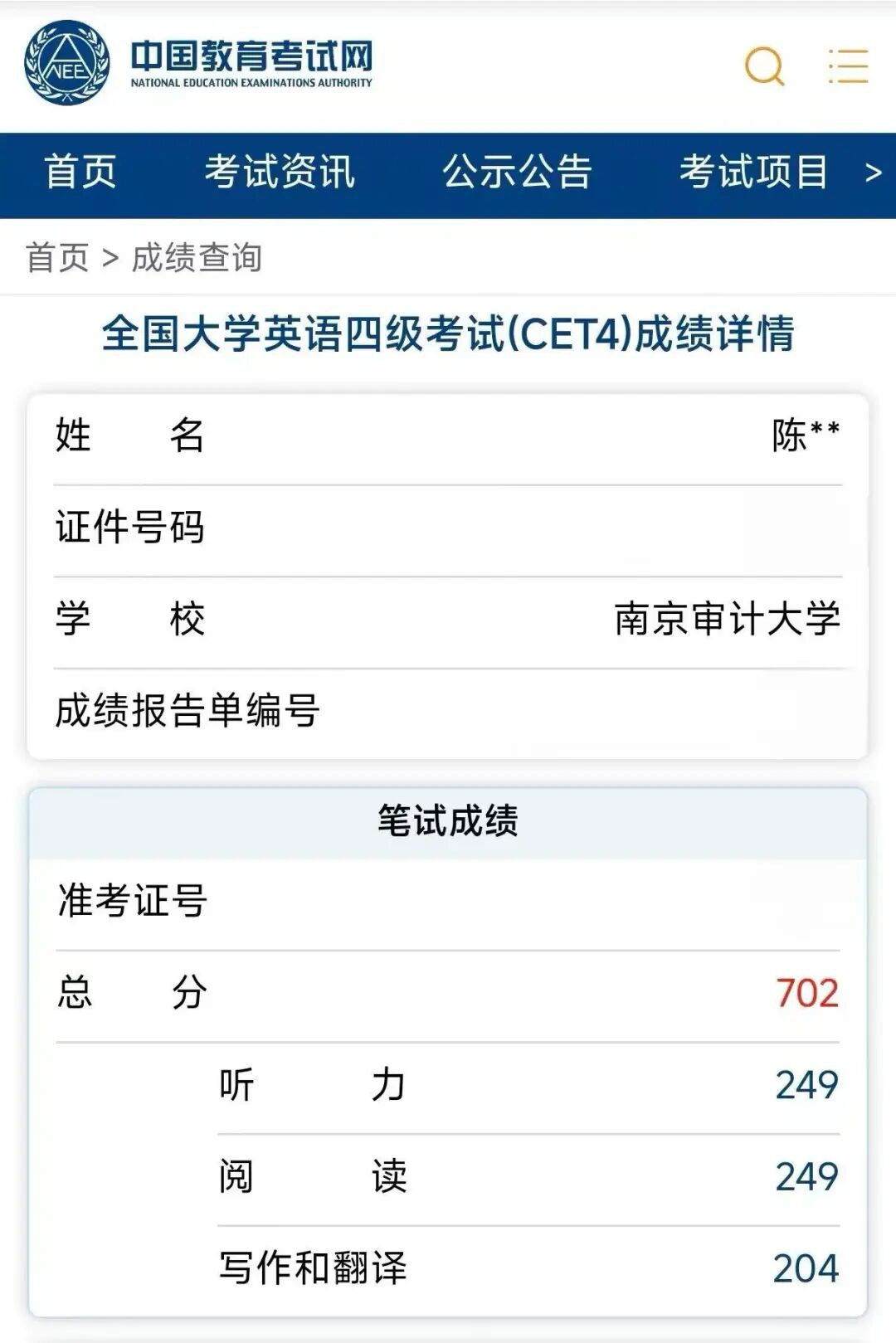 周三的竞秀北楼阶梯教室,选课系统的加载图标反复转圈,磨着所有人的耐心。百无聊赖间,我突然想起当天是四级查分日,随手点开四六级官网,输入身份证号时甚至漫不经心,可屏幕上跳出的红色数字“702”,让我瞬间愣住。