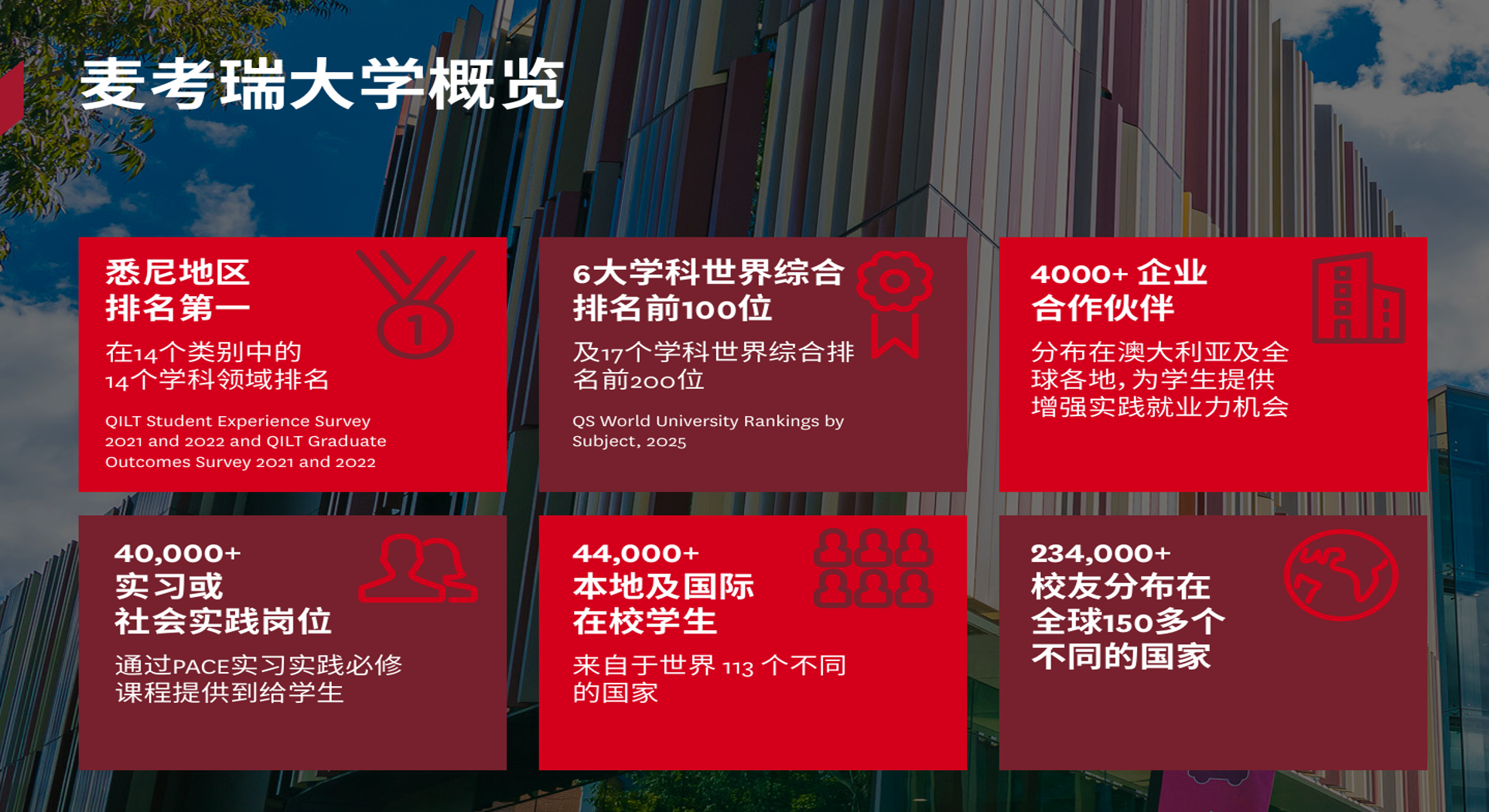麦考瑞大学商科类专业位列全球前100,其商学院已通过AACSB、EQUIS和AMBA三大国际认证。参与该项目的同学,可通过合作渠道升学;同时缩短海外学习的适应周期;本项目还将“本+硕”学历学位的总时长缩短至4年,学生可提前进入职场或继续攻读博士学位。麦考瑞大学商学院与我校“3+1”硕士升学合作的主要方向包括:银行与金融硕士(金融科技方向)(Master of Banking and Finance in FinTech)、银行与金融硕士(金融管理方向)(Master of Banking and Finance in Financial Management)、商业硕士(会计与审计方向)(Master of Commerce in Accounting and Auditing)以及商业硕士(商业分析方向)(Master of Commerce in Business Analytics)。根据项目安排,我校金融学、投资学、金融审计、金融工程四个专业的同学可以在大二下学期开始申请,大三上学期开始进入项目学习。目前针对以上专业的大二学生已开始接受咨询与预报名,有意向的同学可以与班级辅导员联系。