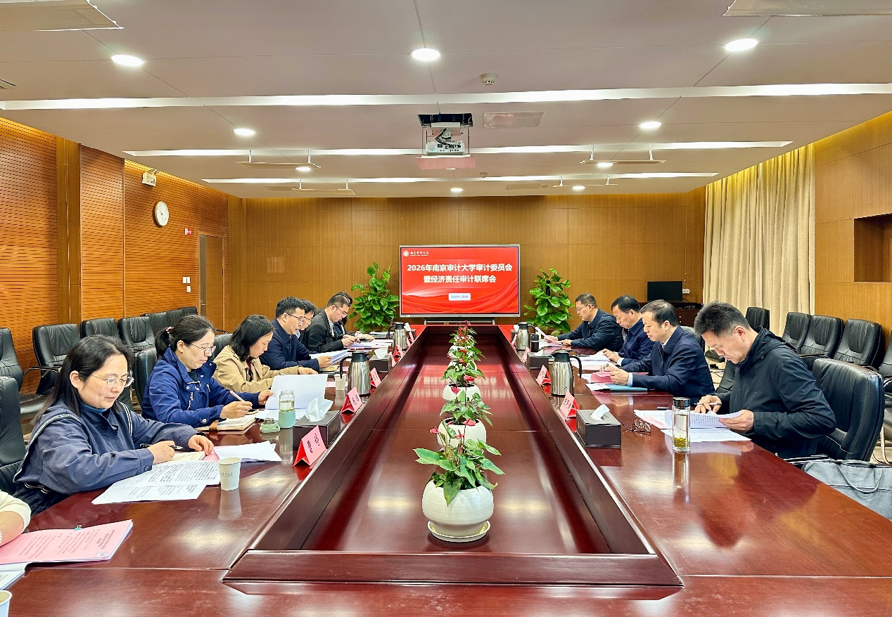 4月7日上午,学校召开2026年审计委员会会议暨经济责任审计工作联席会议。校党委书记、审计委员会主任董必荣,校党委副书记、审计委员会副主任陈中建,省纪委监委派驻学校纪检监察组组长、校党委常委、纪委书记、审计委员会副主任赵立法出席会议。审计委员会及经济责任审计联席会议成员单位主要负责人参会。赵立法主持会议,并领学了2026年全国审计工作会议及江苏省委审计委员会会议精神。