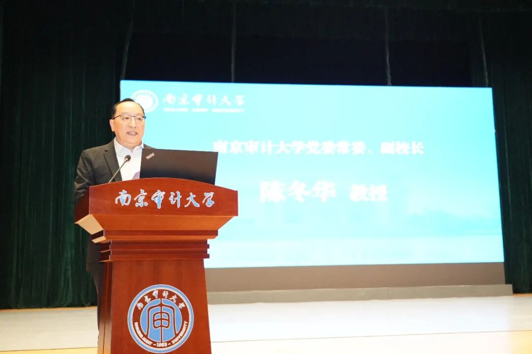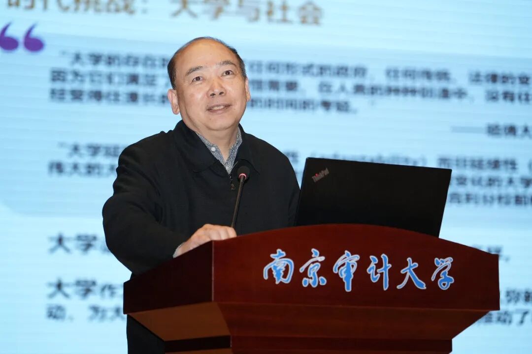 董必荣致开幕词,并向莅临现场的各位专家学者表示感谢。他围绕“挑战、创新、探索”三个关键词,介绍了南京审计大学始终坚持守正创新、先行探索,深耕国际化联合培养、产教融合育人、交叉学科融合等领域,在特色专业布局、复合型人才培养、特色班级建设等方面持续发力,形成了一批特色办学成果。他分析指出,当前时代变革加速演进,财经类高校正迎来全新发展变局与深层考验。他表示,面对新形势新要求,我们必须深刻审视人才培养导向、科学研究与社会发展需求的适配性,正视人工智能变革冲击、外部环境格局变化带来的多重挑战,明晰财经类院校转型发展的时代命题,期待专家的报告能为南审的未来之路提供前行指导。