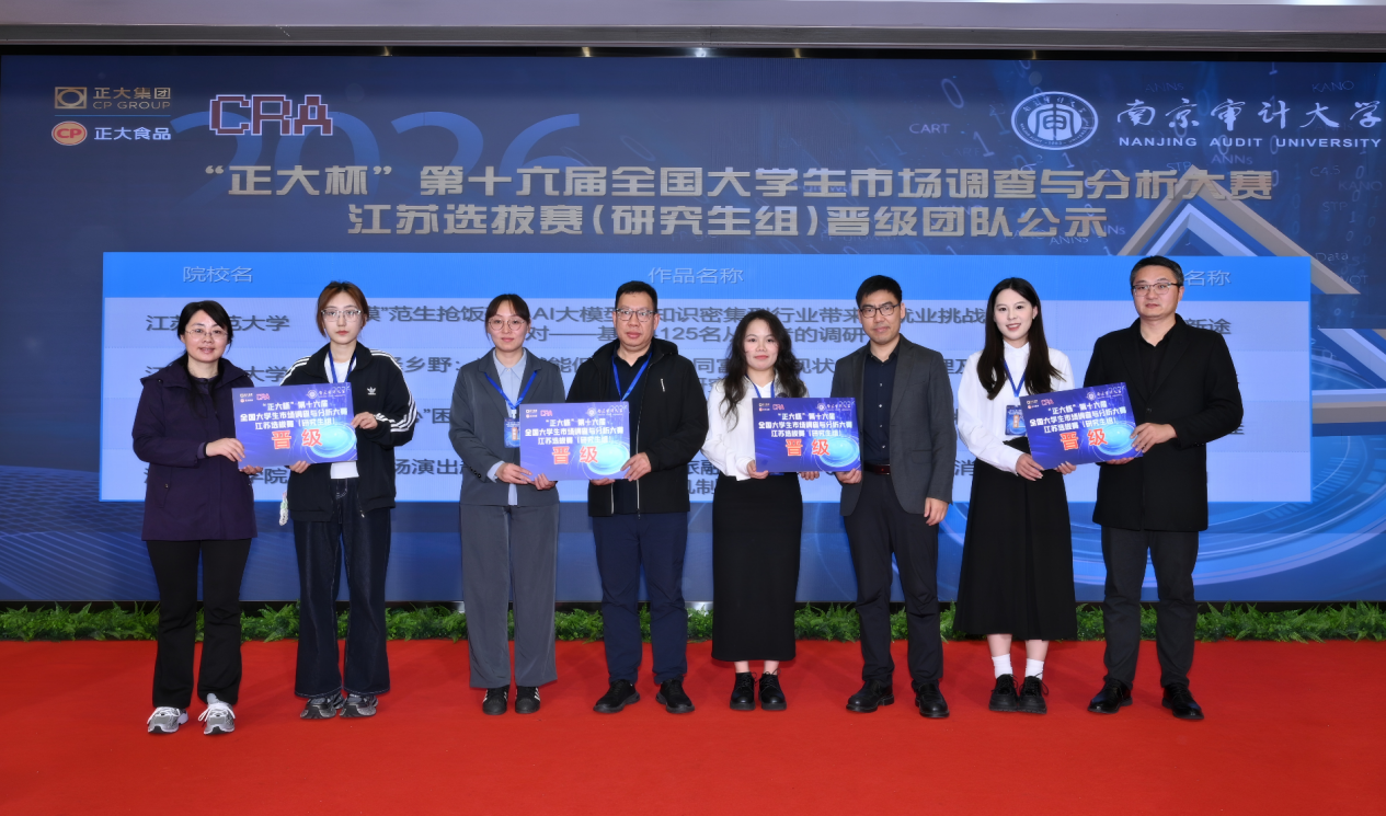 大赛特邀中国科学技术大学、华东师范大学等高校教授及行业专家组成评委团,从选题、调研、分析及落地价值等维度进行了评审与指导。来自南京审计大学、江苏师范大学、南京林业大学、南京财经大学、江苏理工学院的8支队伍晋级,将代表江苏省参加全国总决赛。