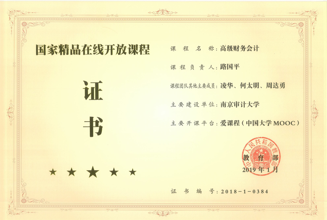《高级财务会计》是国家精品在线课程(2019);