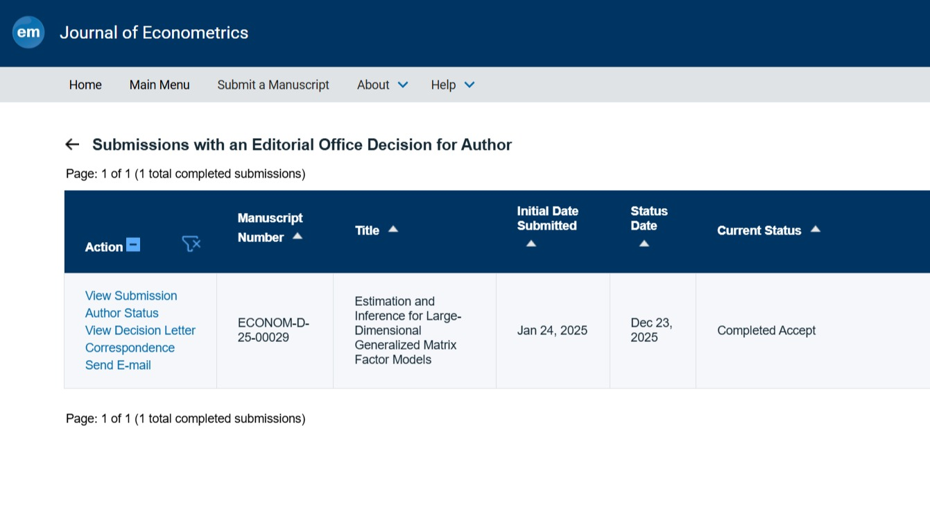 我校博士生张彤科研成果被计量经济学顶刊JOE接收
